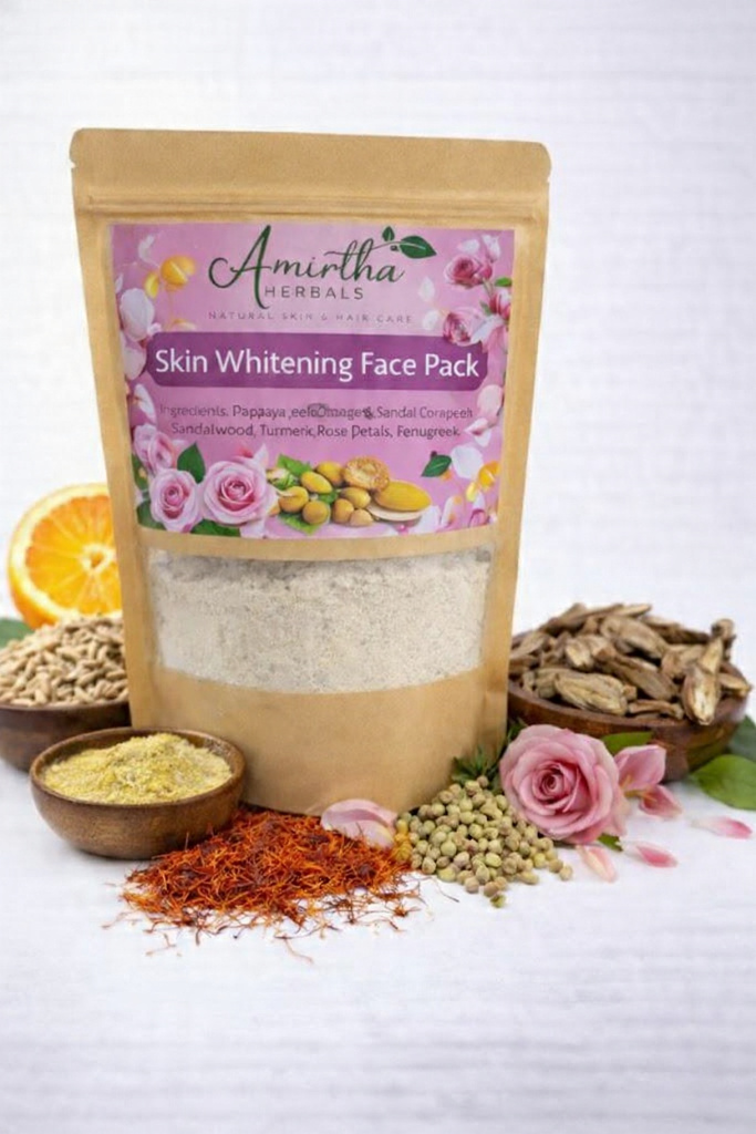 A gentle herbal blend of green gram, orange peel, athimathuram (licorice), wild turmeric, ashwagandha, rose petals, and oats powder that helps cleanse the skin, brighten complexion, soothe irritation, and improve overall skin texture naturally